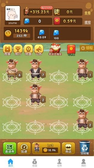 3、充满趣味的养成过程能带来额外惊喜,等级越高的牛只产出的金币越多,完成任务后还能领取红包奖励。