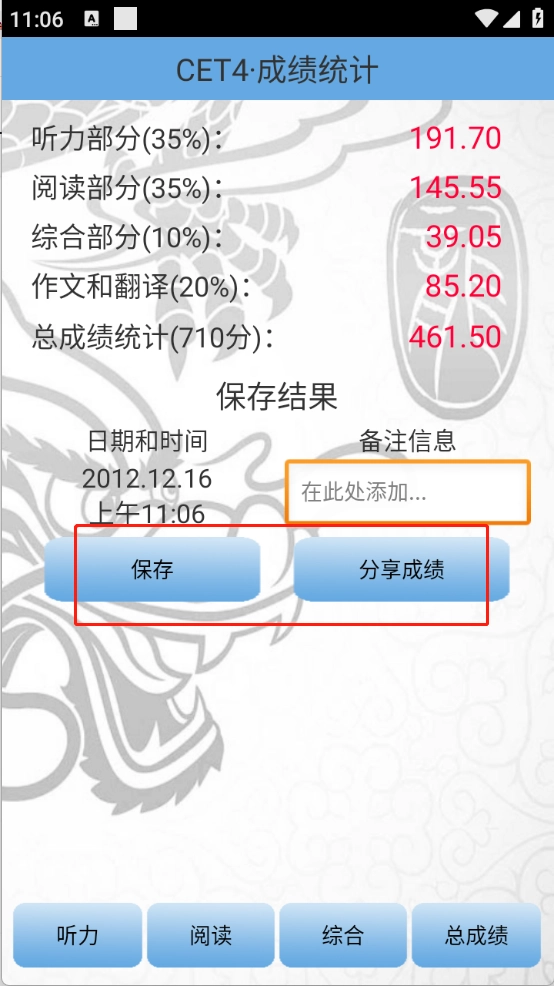 4、可以将估分成绩进行保存以及分享。