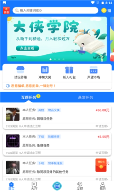 4、支持发布悬赏任务、信息发布以及互助合作,不仅能赚取任务佣金,还可以发布推广信息,是零成本推广的理想渠道。