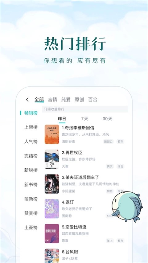 热门榜单推荐:这里汇集了高人气的作品,也有网友口碑相传的佳作,每一部都经过了严格筛选,内容精彩纷呈。