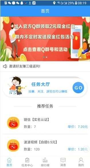 在首页选择并完成任务就能进行操作,目前平台还设有新手福利,只要完成任意一个任务并通过审核,添加交流群群号695816179,就可以领取2元现金红包,不过这个活动我还没有亲自验证过。