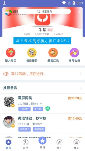 4、牛帮允许用户通过该服务平台体验丰富多样的奖励任务,任务内容十分详尽。