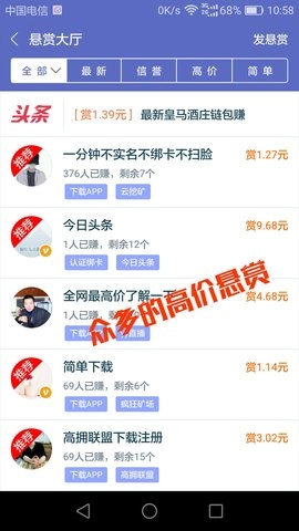 2、平台任务单价在0.08元及以上,发布需求无任何条件限制。需要注意的是,做任务前务必先完成报名步骤,未报名将无法获得佣金。