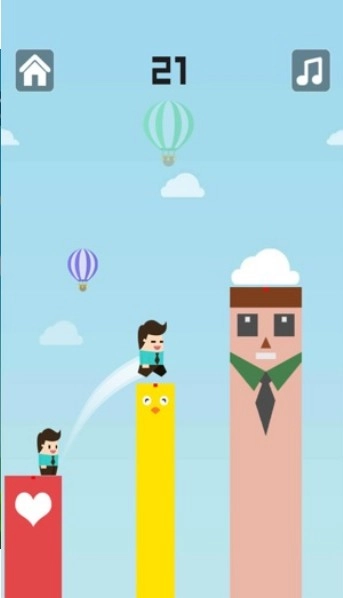 2、持续向上探索终点,跃至顶端能获取高分,位置越高得分就越多。