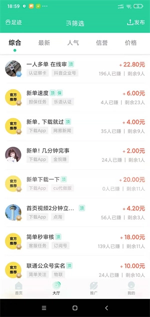 3、任务自由筛选:能依据发布情况、审核速度、收益高低、通过率等条件挑选适宜的任务。