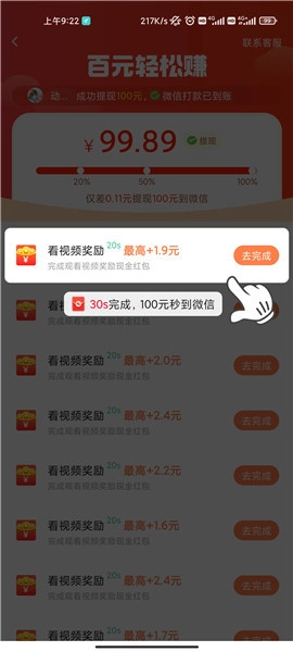 虽然每个任务的报酬不算高,但能很好地提高用户的活跃度,从整体来看收益是很可观的。完成10个任务可以得到0.2元;完成20个能获得0.5元;完成30个就有1元,按照这样的规律,要是一天能完成30个任务,收益大概能达到50元左右。