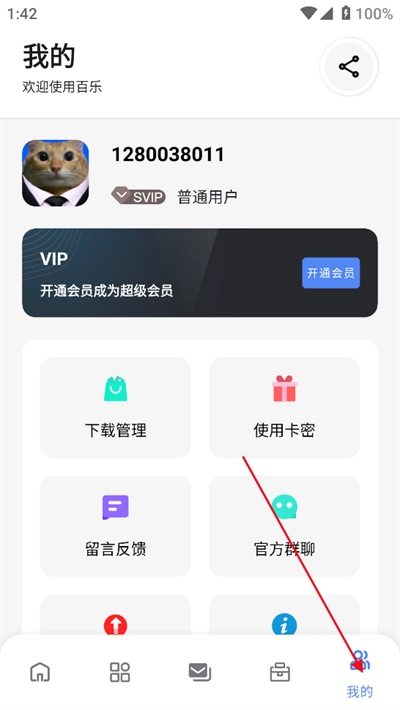 1打开百乐软件库,点击右下角【我的】;