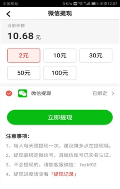 3、首次兑换的门槛是0.3元,之后只要满1元就能提现,整个过程不收取手续费,而且资金会秒到账。