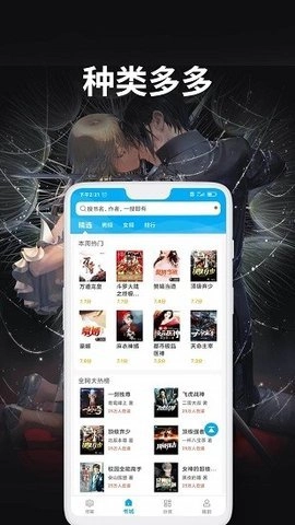 2、丰富多样的小说类型:玄幻、都市、言情、武侠、科幻、军事、职场励志等一应俱全。