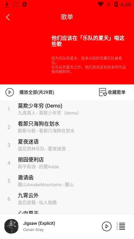 3、所有歌曲都支持离线缓存,没网的时候也能收听
