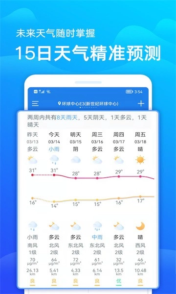 15天天气预报,包含多天降温降雨趋势提醒,让你掌握更多天气信息,提前为出行做好计划