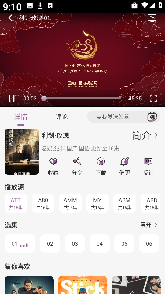 3、点击任意剧集就能开始播放,比如我们选《利剑玫瑰》来测试,不需要额外加载,能秒速进入播放状态。