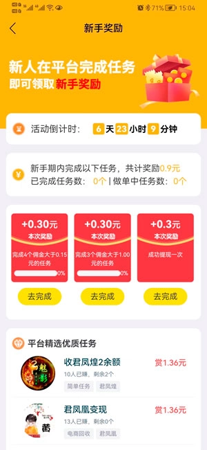 1这是一个简单便捷的任务平台,即使是新手也完全不必担心,只需依照提示在线操作即可,任务完成后收益会及时到账。