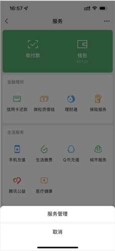 1、使用微信支付的用户,可先打开微信应用,进入后切换至“我的”页面,随后点击“服务”选项。