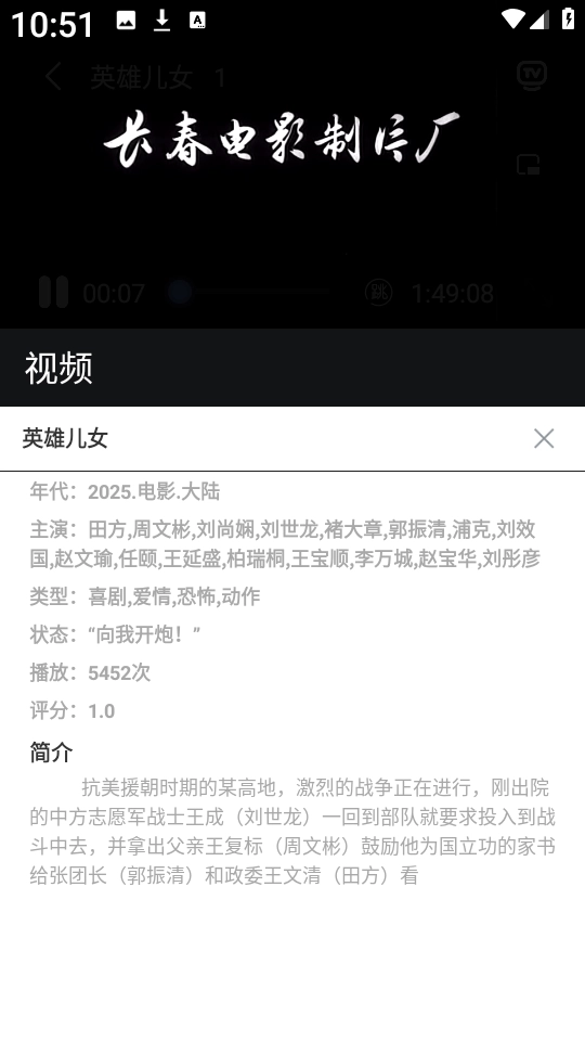 4、在视频播放界面,可随时查看该影片的详细信息介绍。