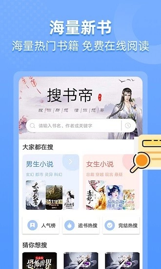 搜书帝是一款汇聚海量无删减小说的掌上阅读平台,支持全网小说资源搜索,让用户彻底告别书荒。平台内所有小说均可阅读,更新速度快,读者无需长时间等待。如果你平时也喜欢看书,不妨来体验一下!这是一款值得大家尝试的小说阅读软件。