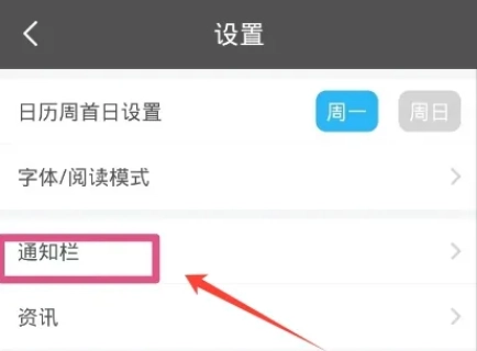 2、接着我们点击列表的【通知栏】进入。