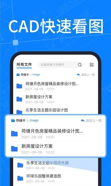 这款平台为用户提供的各类图纸查看功能都更为实用,用户可以自主搜索查找,能快速切换不同关键词,还能了解到各类图纸的信息,也可以直接点击返回上一级按钮,轻松查看上一页面中的各类文件。