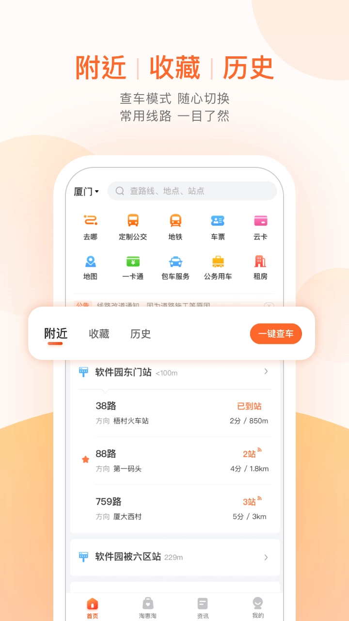 只需输入线路名称或站点名称,就能清晰了解该线路公交的实时位置、发车时刻以及到站提醒。
