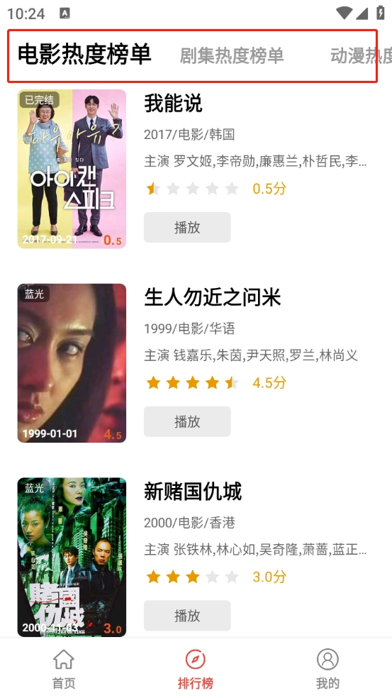 2、排行榜板块为大家呈现了电影、剧集和动漫的热度榜单。