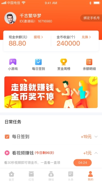 1.国内领先的赚钱应用,红包即领即到账,全程无任何手续费。