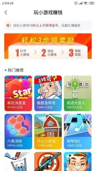 2.任务类型丰富多样,涵盖游戏试玩与微信热门内容分享等,让你时刻保持新鲜感与乐趣。