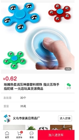 1. 所有商品均以超实惠的价格呈现,点击购物车即可查看起批数量,各类颜色与款式也都清晰展示。