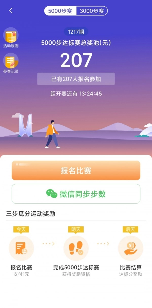 2、走走路,完成5000步,即可瓜分奖金。