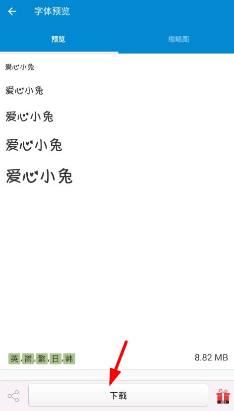 2、选中心仪字体后进入“字体预览”页面,点击底部按钮即可开始安装所选字体包。