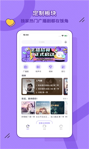 1、深耕广播剧赛道,整合海量优质有声内容,覆盖多元收听场景与需求。