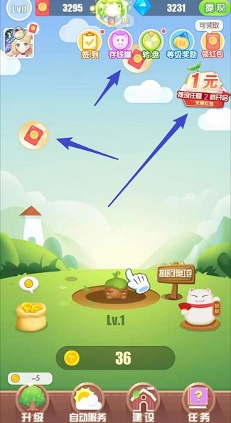 1、随着土地逐步开放,通过积累收益提升果树等级,解锁更多荒地进行拓展;