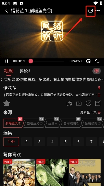 3、视频播放时,留意右上角区域,点击“TV”标识按钮,就能启用无线投屏功能。