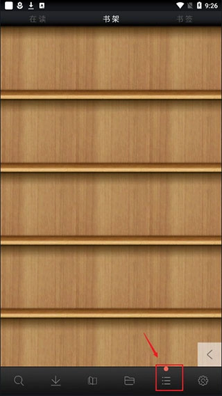 1、完成操作后打开应用,默认状态下书架为空,点击底部的“三”图标即可进入站点管理界面;