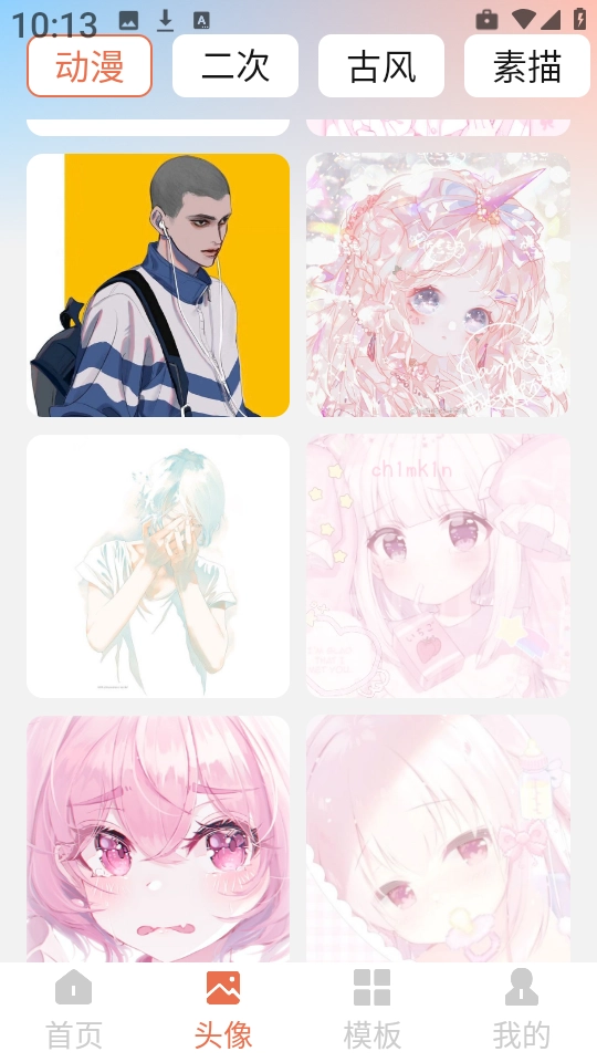 2、进入头像库后,可自由浏览Q版、可爱风、情侣款等各类社交头像素材,选中心仪款式后点击“头像”。