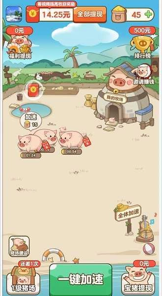 猪猪庄园红包版是一款趣味十足的休闲养成游戏,玩家通过简单操作就能收获丰厚奖励。游戏采用清新治愈的美术风格,搭配放置玩法机制,让大家在体验养成乐趣的同时,还能随时兑换现金红包,感兴趣的朋友不妨来试试吧。