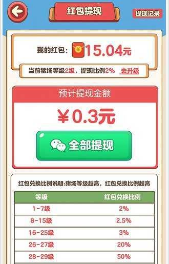 2.把两只等级相同的小猪合成起来提升等级,就能解锁更多红包惊喜。