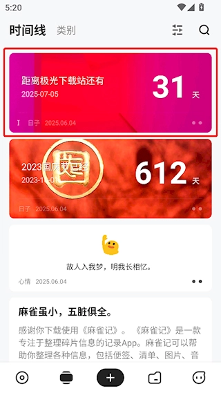 4、退出编辑界面后系统会自动保存内容,进入时间线界面即可查看已保存的内容