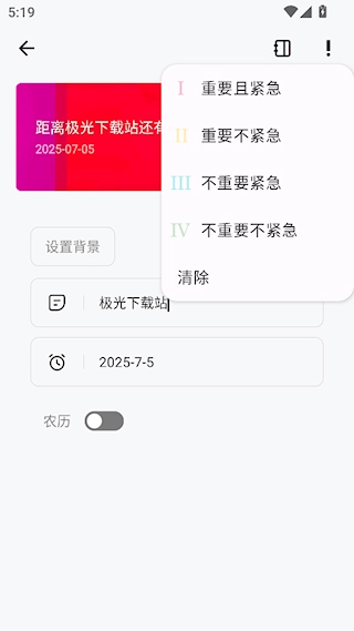 3、设置名称与时间,还能点击右上角的感叹号来设置四象限