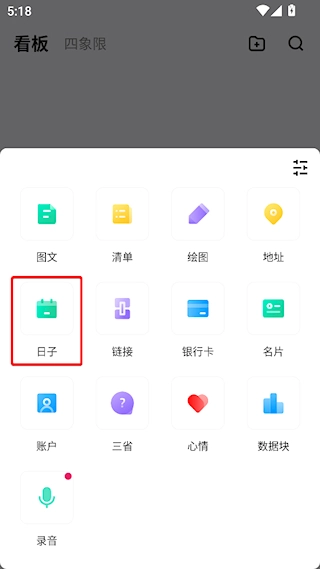 2、在弹出的菜单里选择日子