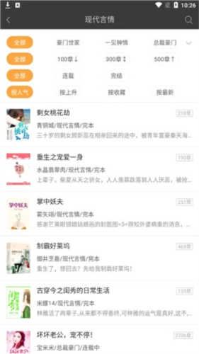 3、挑选你钟爱的板块类型,接着能够依据小说章节、人气等维度来进行分类筛选。