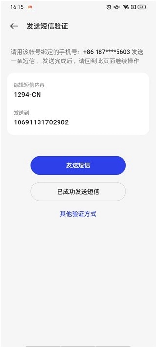 3、使用之前绑定过的号码,按照提示发送短信就能完成绑定操作。