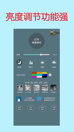 1. 这是一款能精准调节亮度的轻量级实用工具,可针对不同环境设置多样护眼模式,操作简便、设置快捷,多种模式任你挑选,还支持自定义模式,个性化设置更显贴心。