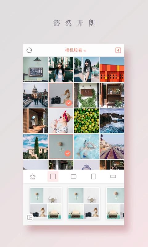 根据选定的照片能自动生成各类模板,这些模板还可以依据不同的需求切换至不同的比例。
