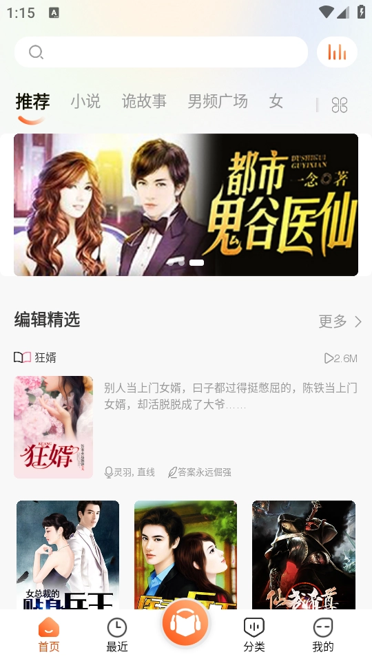 听书王是一款融合听书与阅读功能的小说应用,能为用户带来沉浸式的有声小说体验,大家可以随时打开听书王,畅听平台上丰富多样的精彩内容;平台不仅资源充足,分类还十分清晰,包含了玄幻、盗墓、言情、科幻、恐怖、侦探悬疑、武侠等多种不同题材;另外,它还拥有离线缓存的功能,就算处于没有网络的环境中,也能顺畅地收听或者阅读小说。