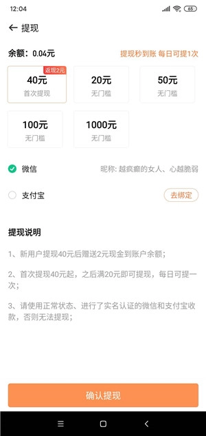 2、提取支持微信和支付宝,秒到账!