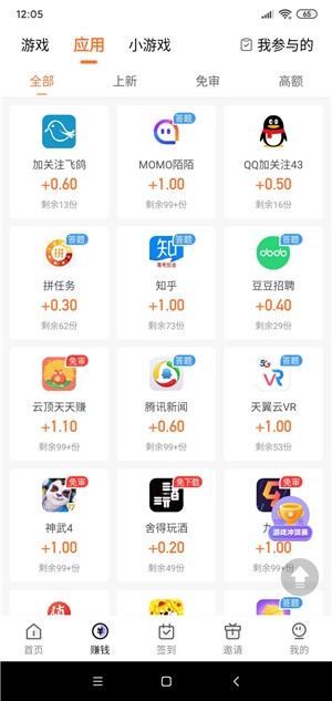 3、冲顶鸭每天都会更新大量可赚钱的日常任务,像试玩应用、试玩游戏之类的,每单价格在1-3元不等,而且这些日常任务没有领取数量的限制。