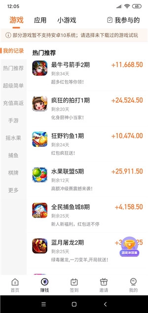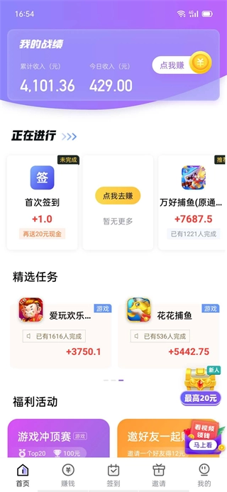 3、选择你感兴趣的内容,玩到每日任务的指定环节就能领取现金奖励,还有无需复杂操作的小任务,直接游玩就能立刻赚钱。