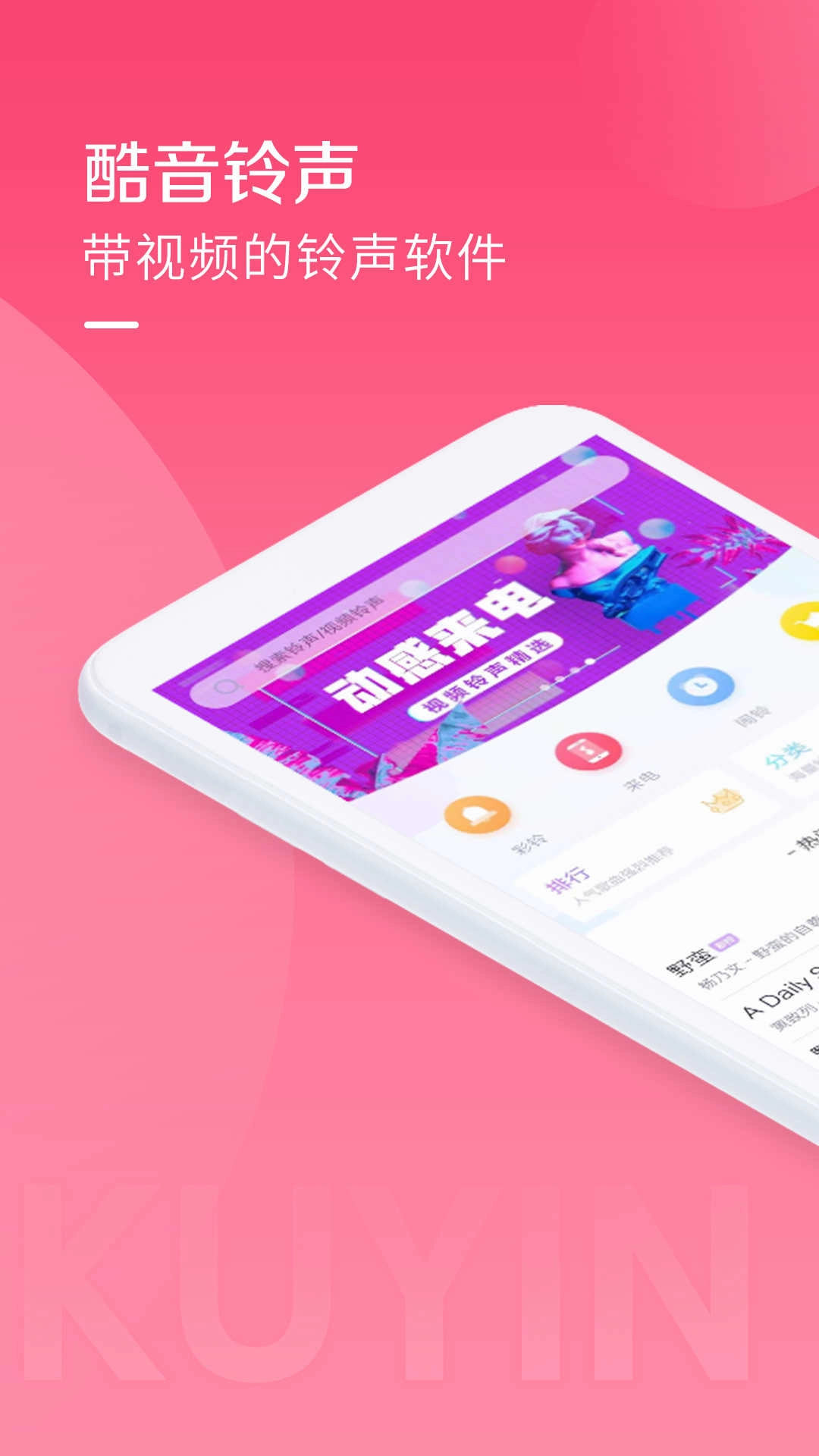 酷音铃声,能帮你轻松搜索并设置心仪的来电铃声。平台拥有丰富的铃声资源,你可以随心挑选、自由更换各种风格的铃声,打造专属于你的个性化提示音体验,快来点击使用吧。