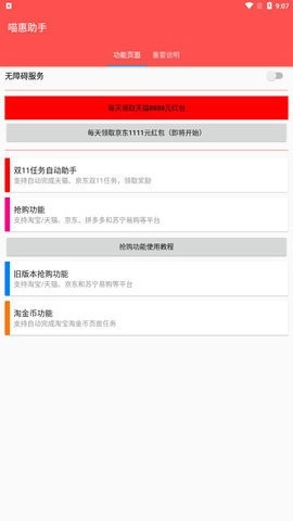 1、支持天猫喵糖、京东双11任务的自动处理,帮助用户领取积分奖励(需注意部分任务仍需手动确认)