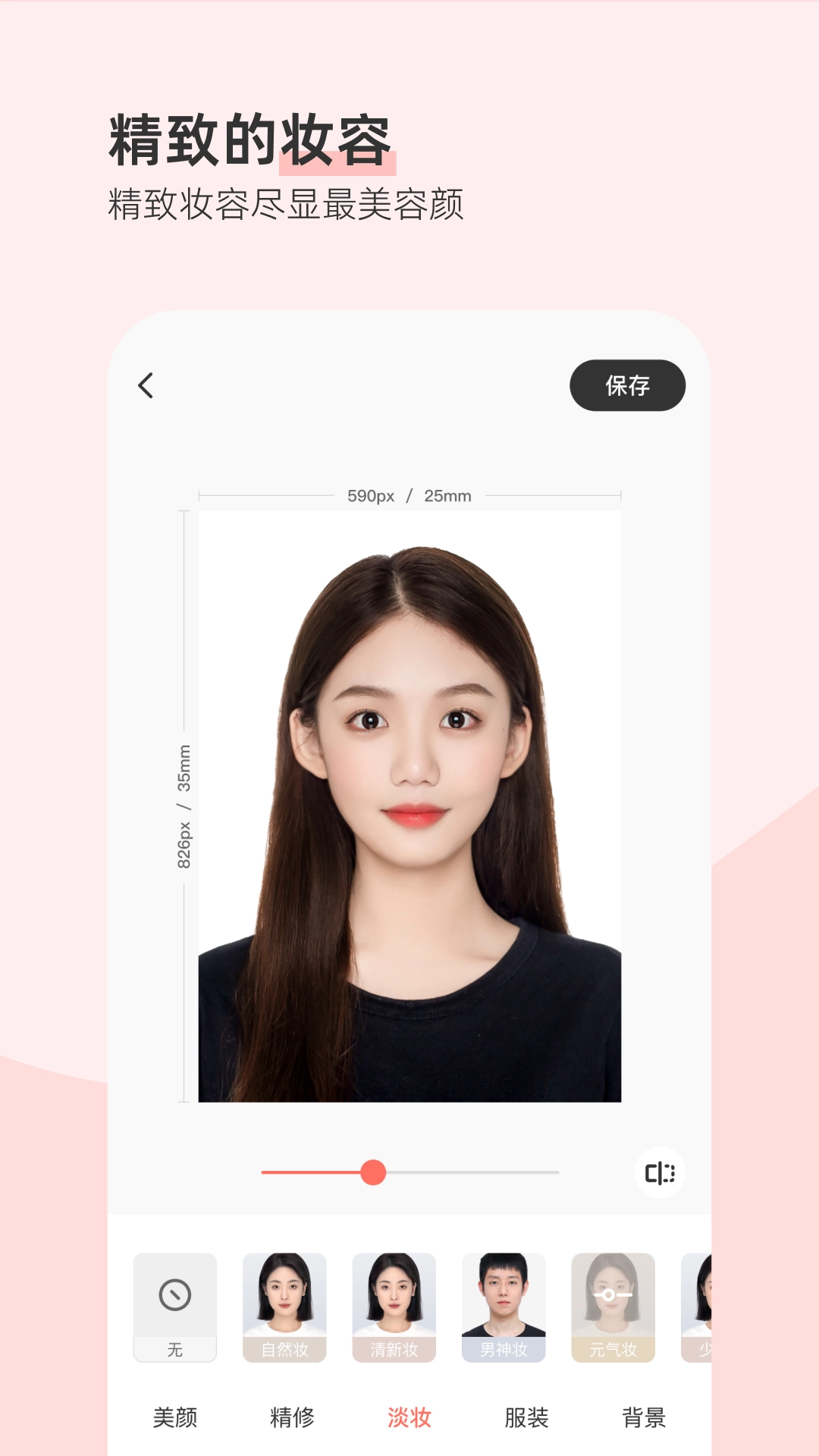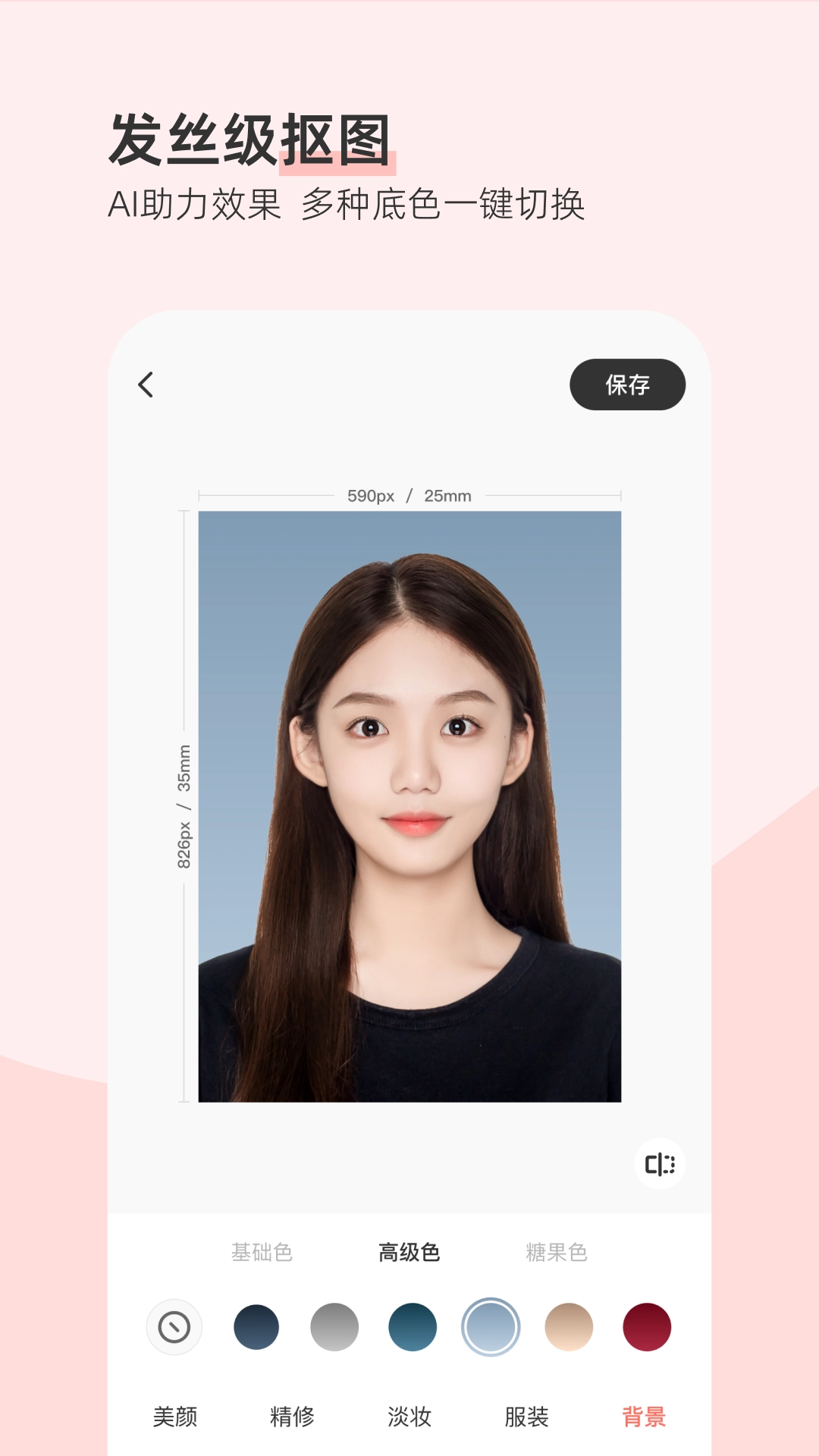 自动裁切头像适配照片,自动校正图像,修复边界模糊问题,实现光线自平衡,还能自主适配环境色等功能。带给您焕然一新的体验,助力您简单轻松地拍摄出合格正规、自然美颜的专业证件照!